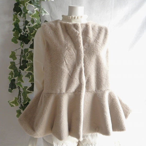 ペプラムスタイルの華やかな大人の上質フェイクファーベストです。
