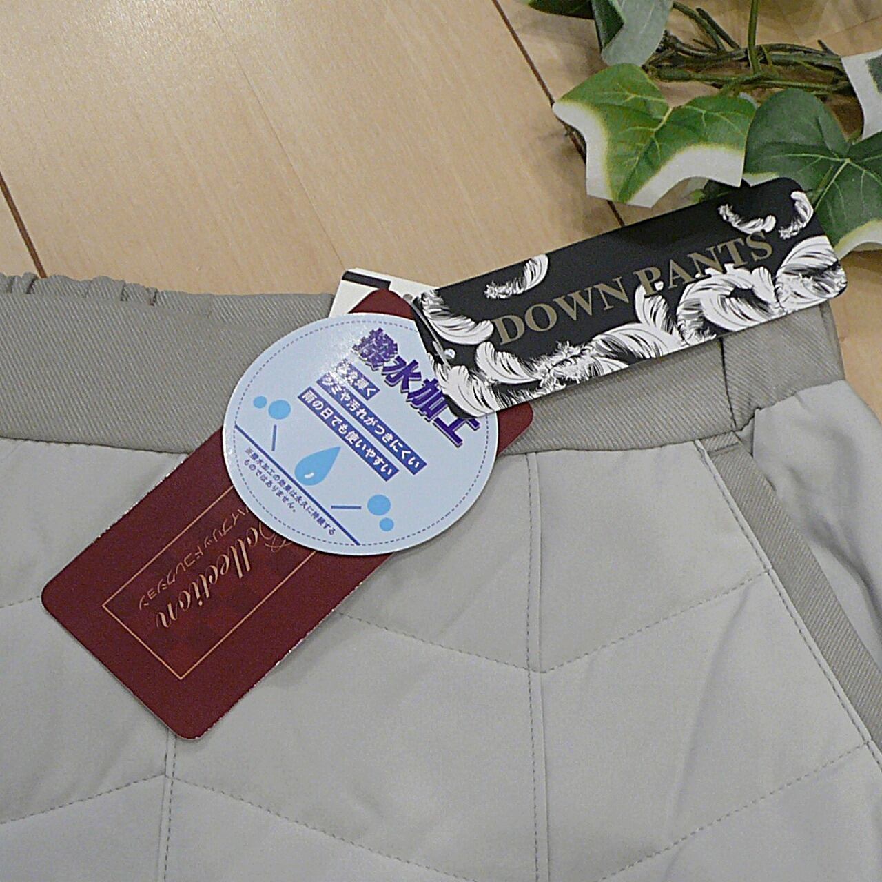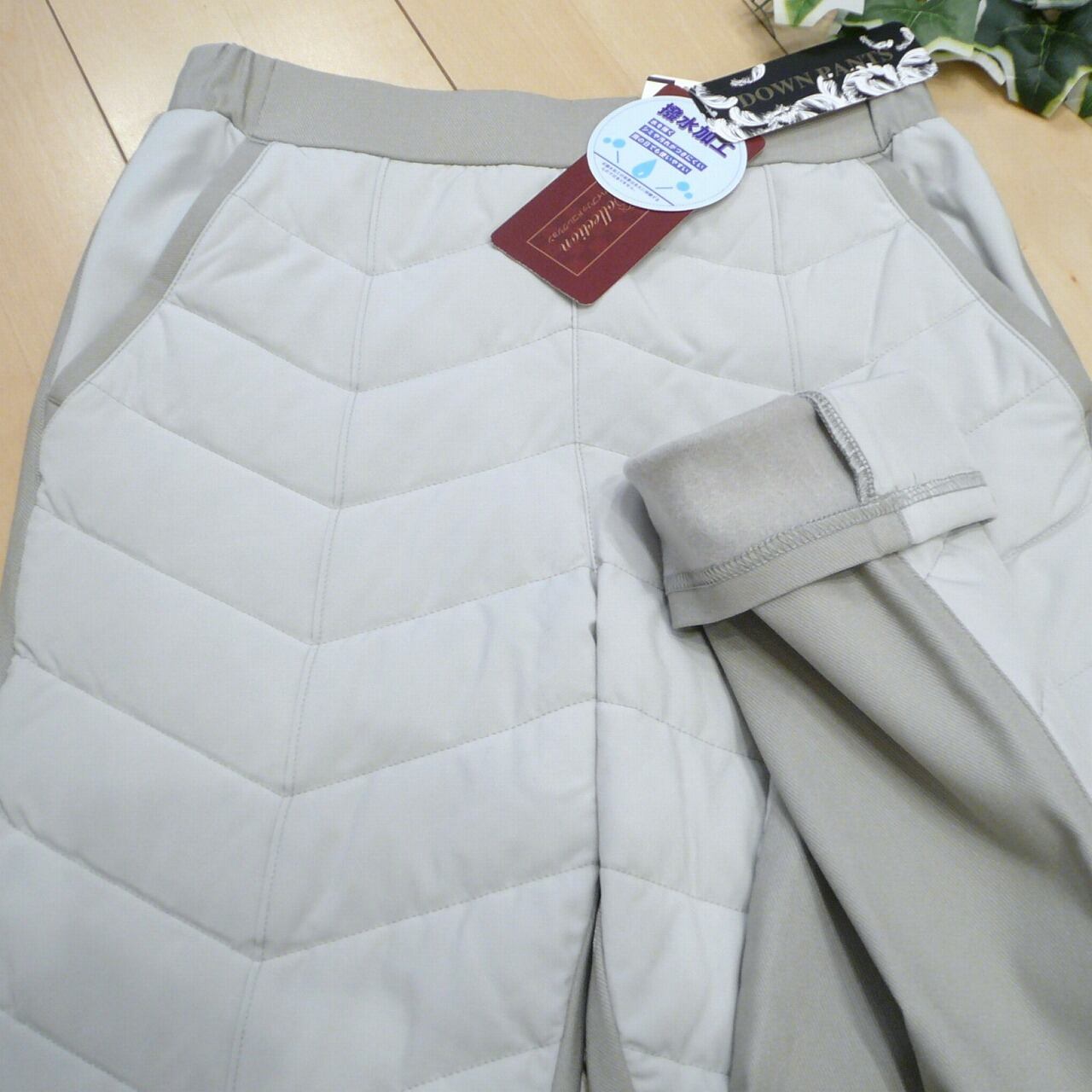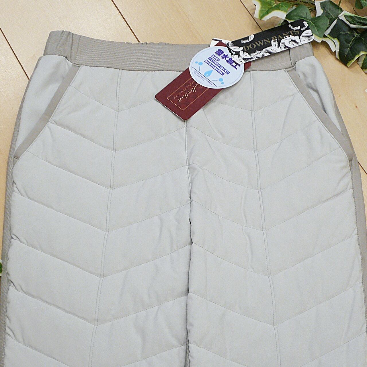 新品 9486 LL ダウンパンツ ダウン80% 後ろ裏微起毛 秋 冬 レディース グレージュ 異素材切替パンツ ストレッチ 撥水加工 上質