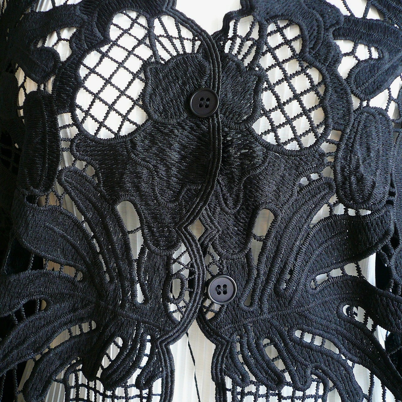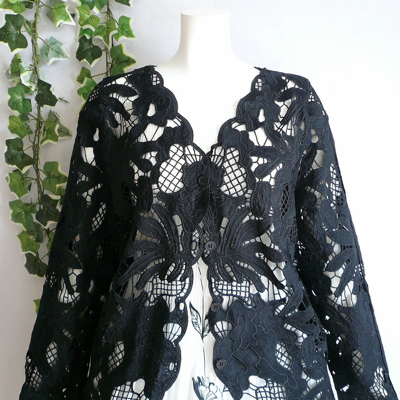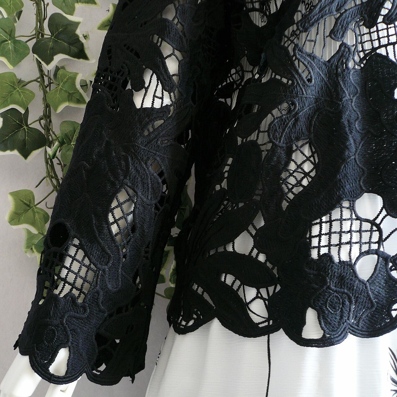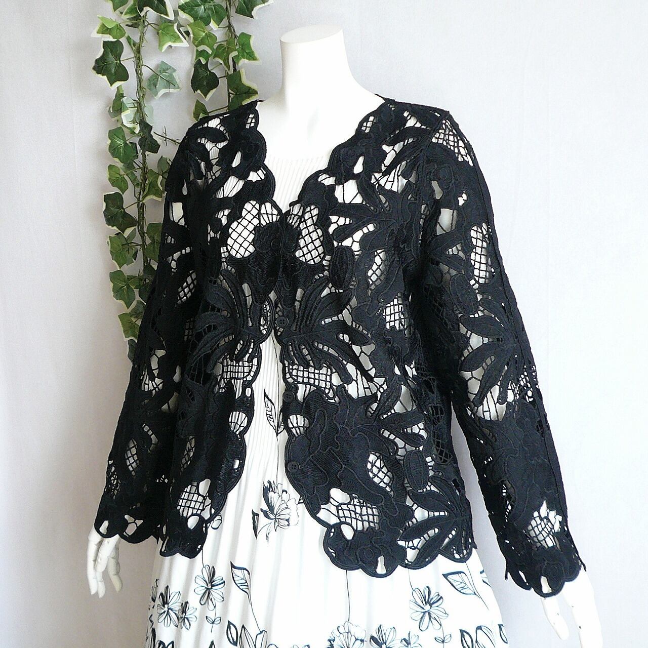 華やかで上品な雰囲気を醸し出すクロシェ風のカットワーク刺繍カーディガンです。