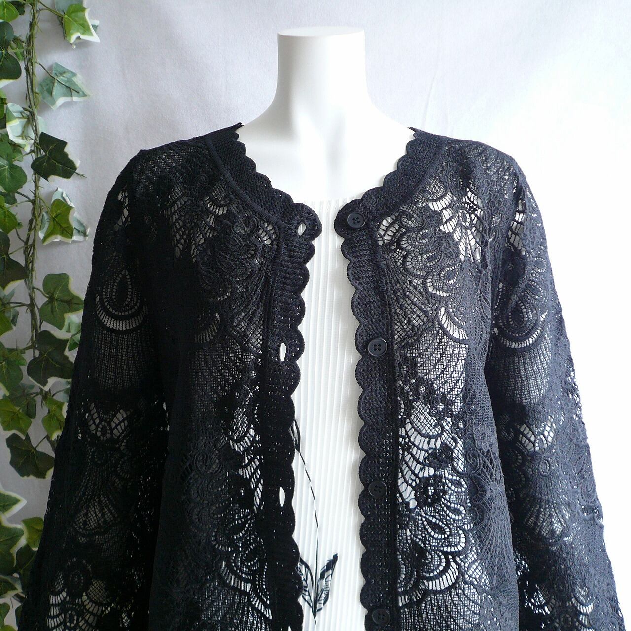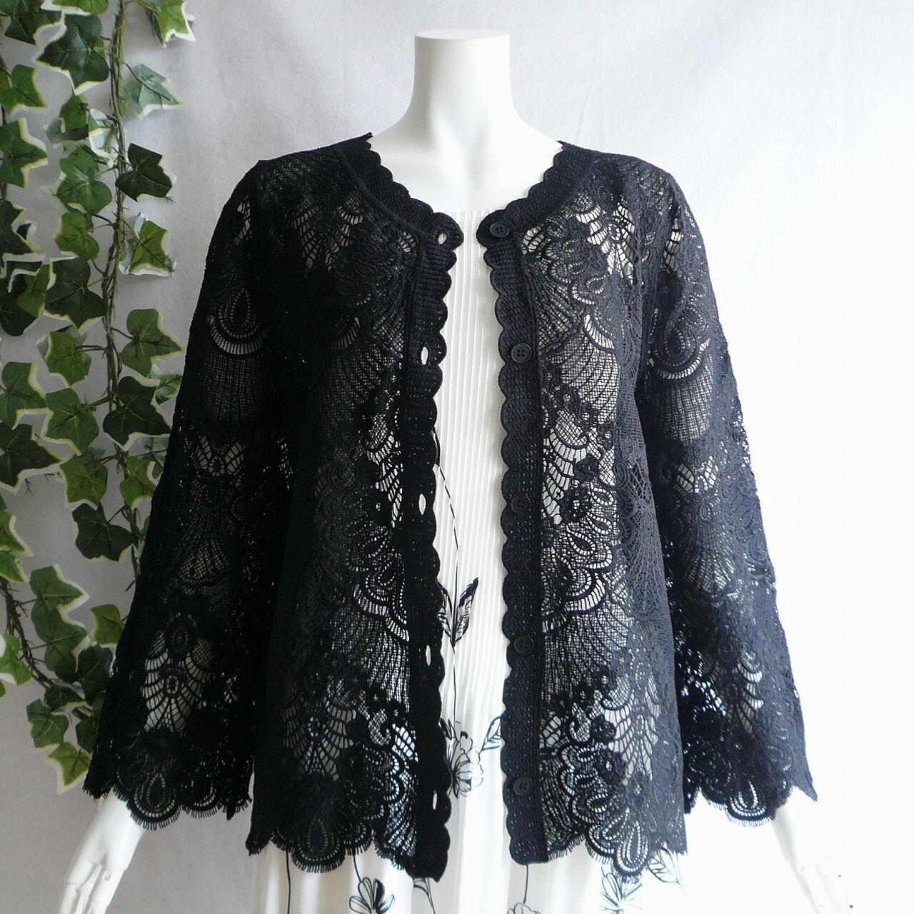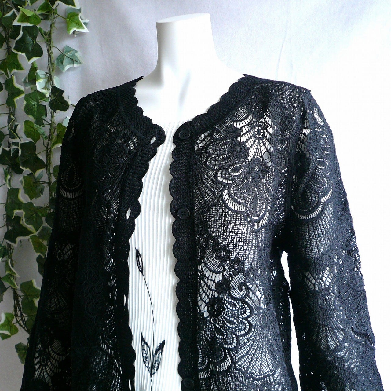 新品 9604 ML クロシェ風 ブラウス カーディガン 黒 春 夏 レディース クラシカルレース 長袖 上質 上品