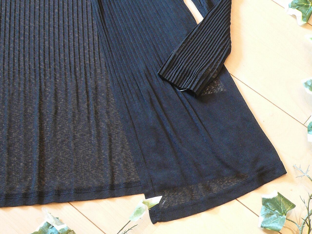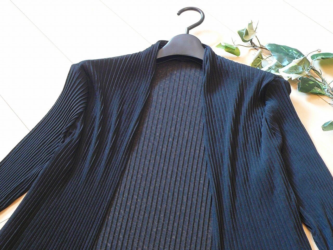 裾にかけて緩やかな広がりのある人気のプリーツカーディガンです。