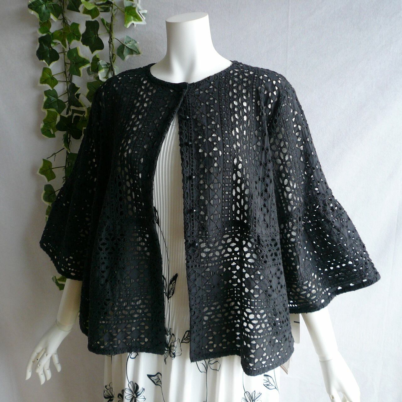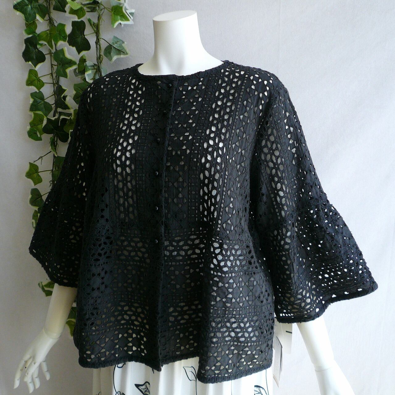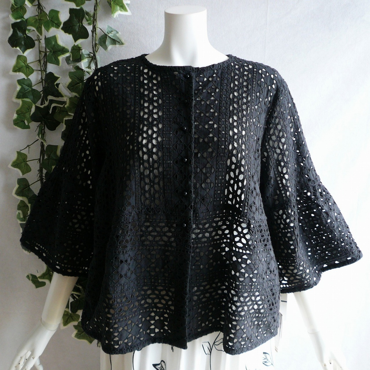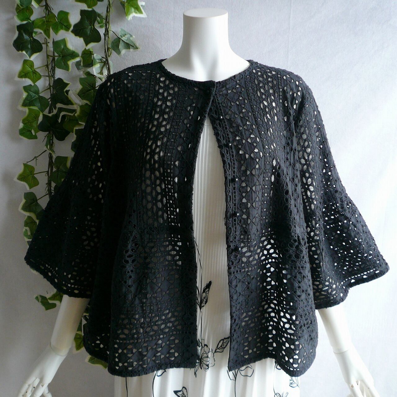 美しいカットワーク刺繍が目を惹く、上品なノーカラージャケットです。