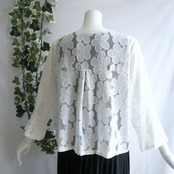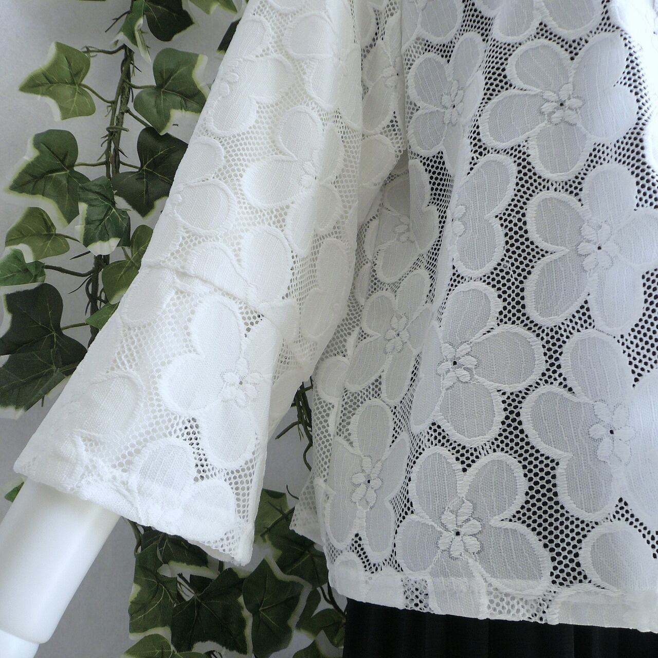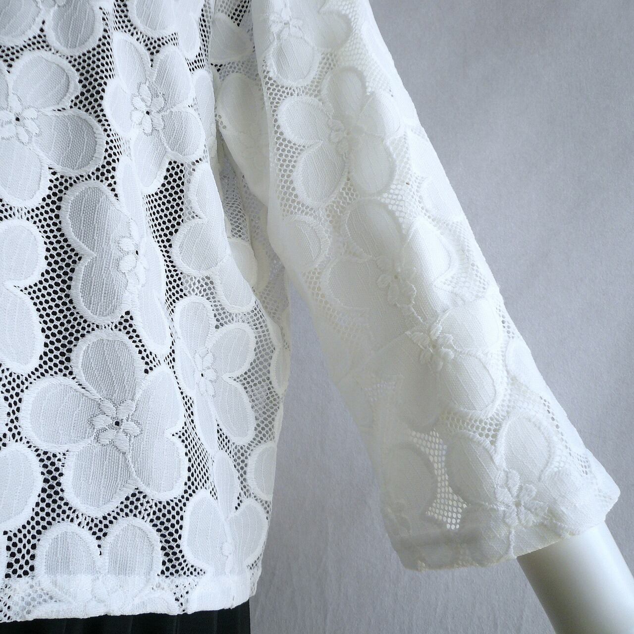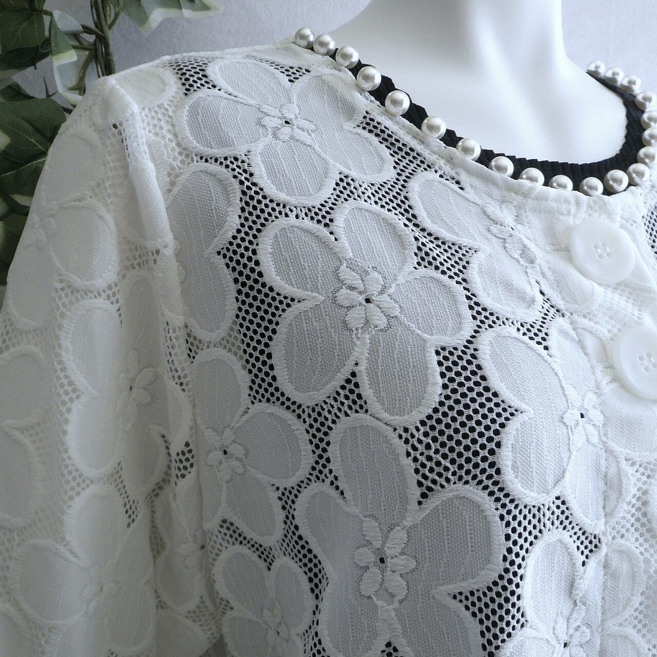 新品 9848 L クロシェ 刺繍 レース ジャケット オフ白 春 夏 レディース ノーカラー カットワーク 高級 上質 上品 50代 60代 70代