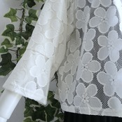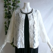 花模様のクロシェ刺繍風レースが印象的な華やかで上品なジャケットです。
