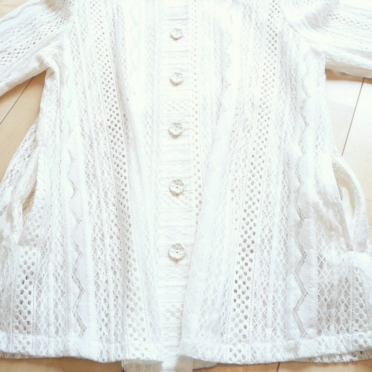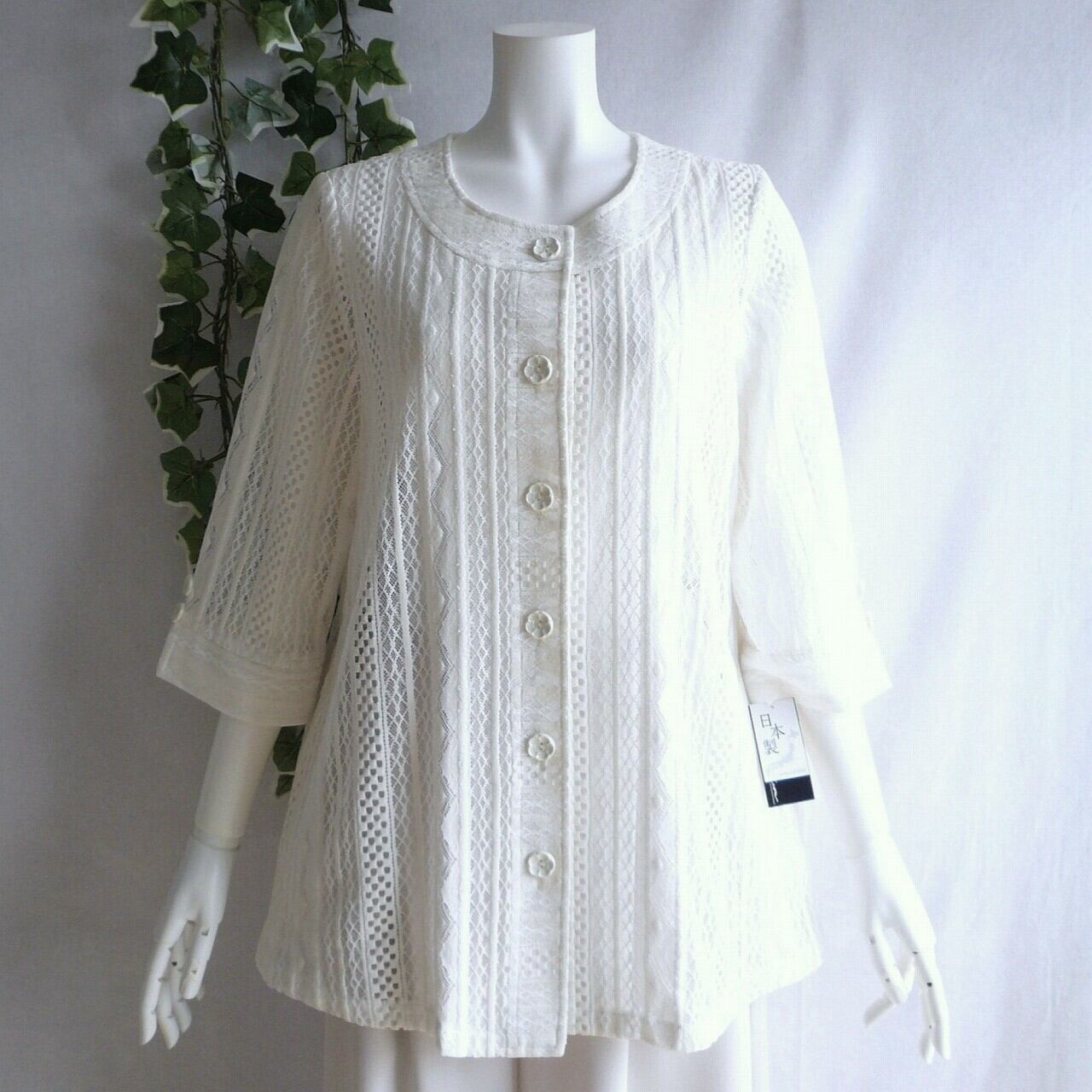 美しい透け感のクロシェレースが印象的な高級感のある日本製のジャケットです。