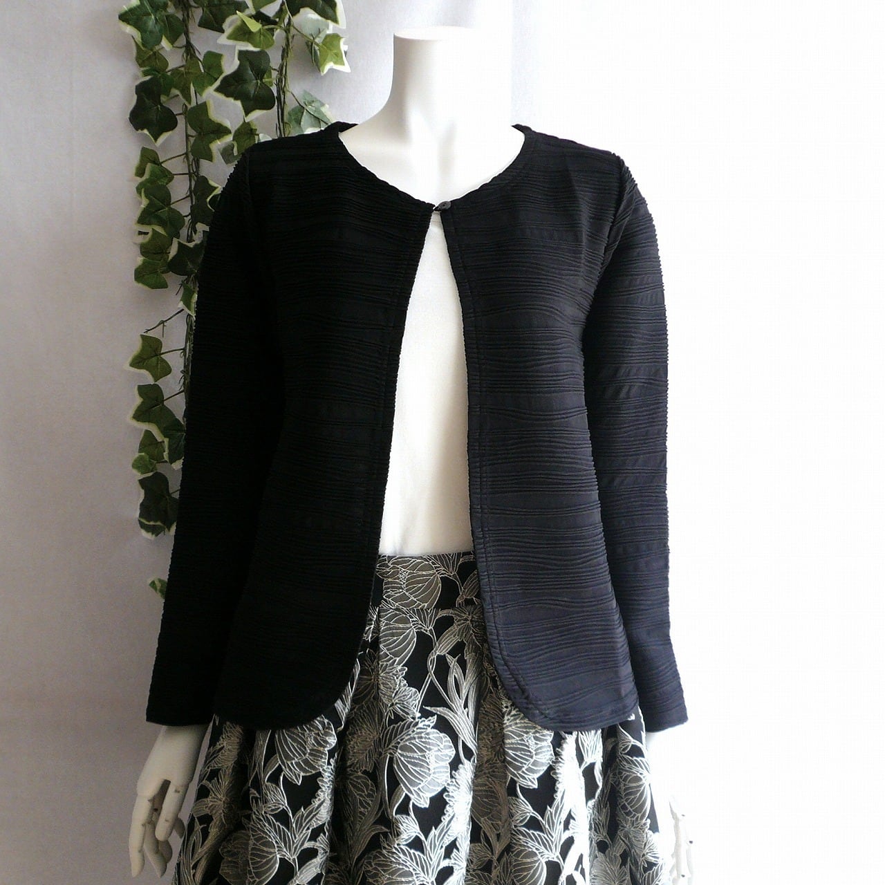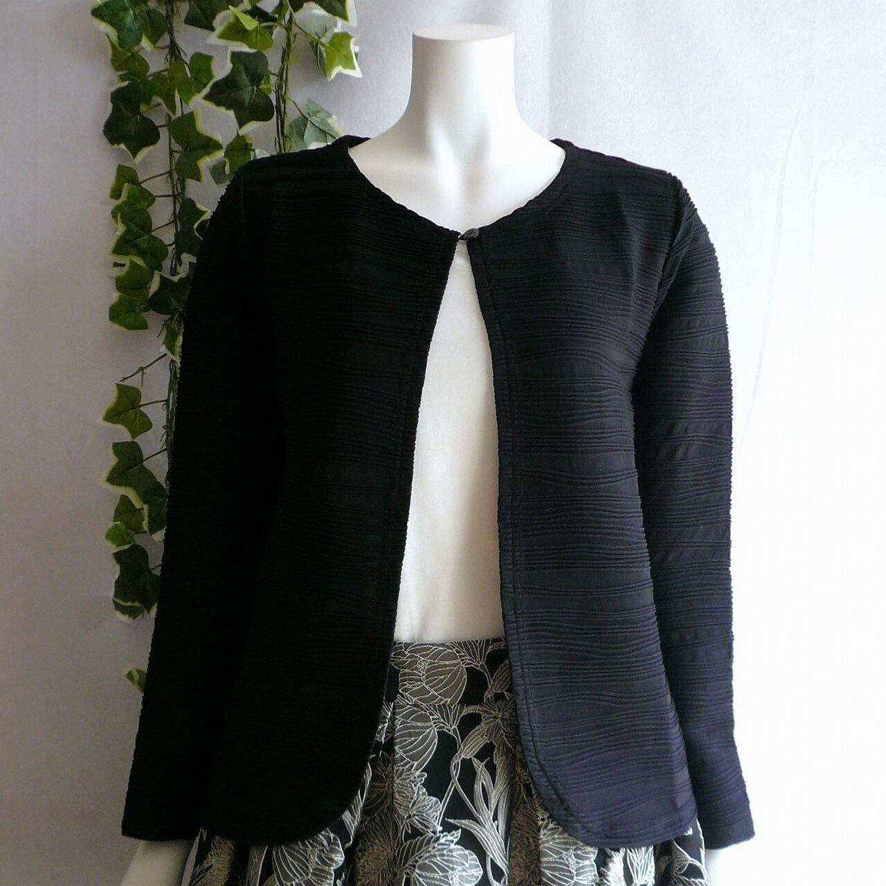 凹凸感のあるウエーブプリーツのエレガントなカーディガンです。