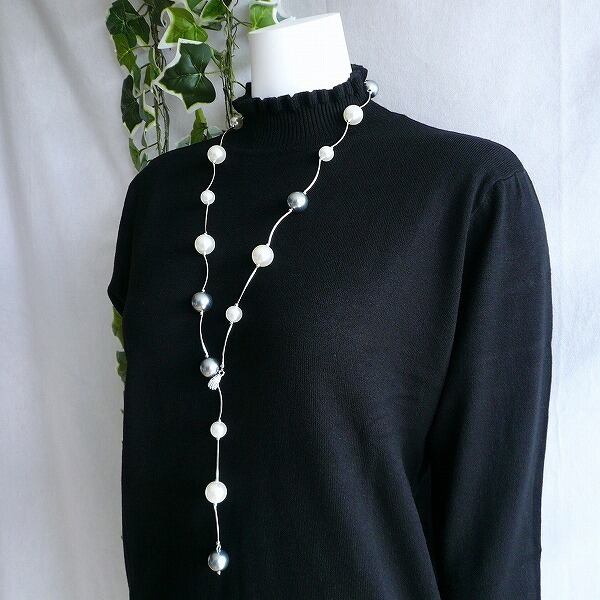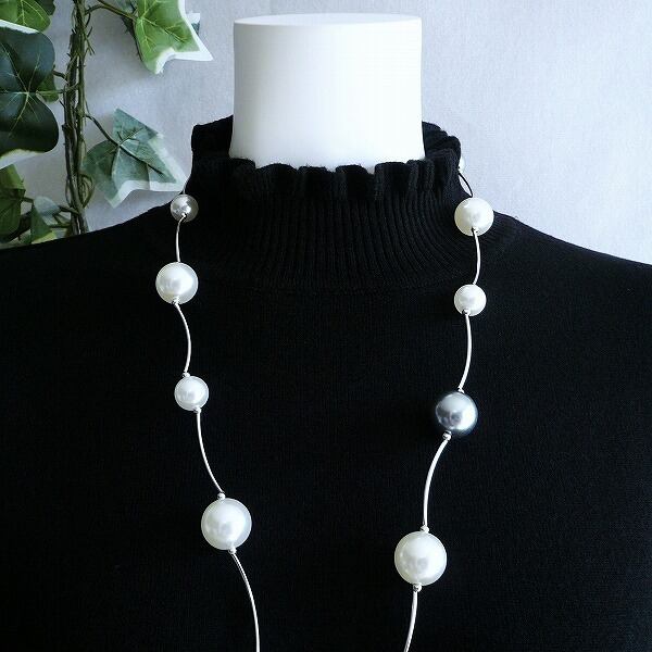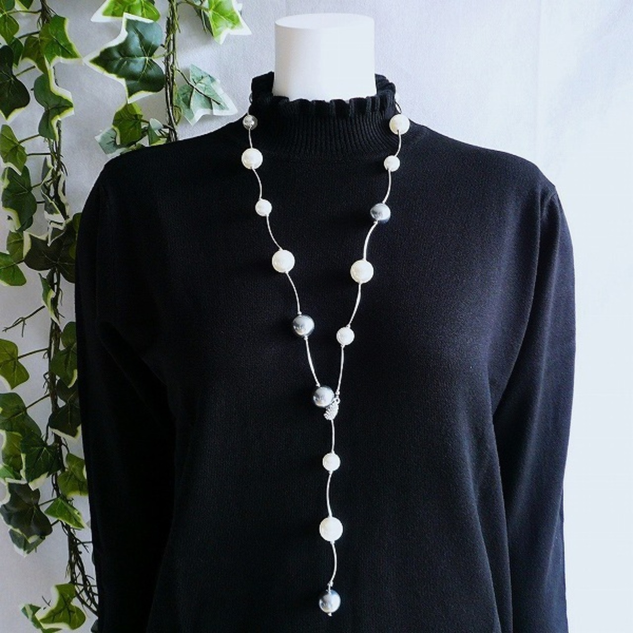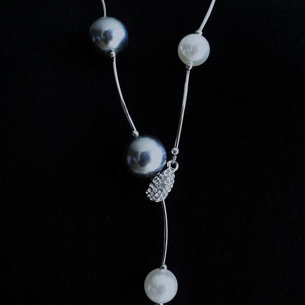 2色使いの大粒ガラスパールのY字ステーションネックレスです。