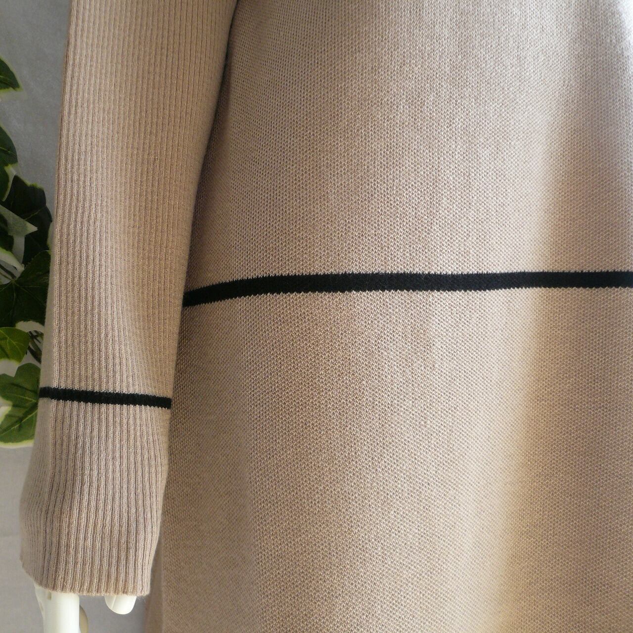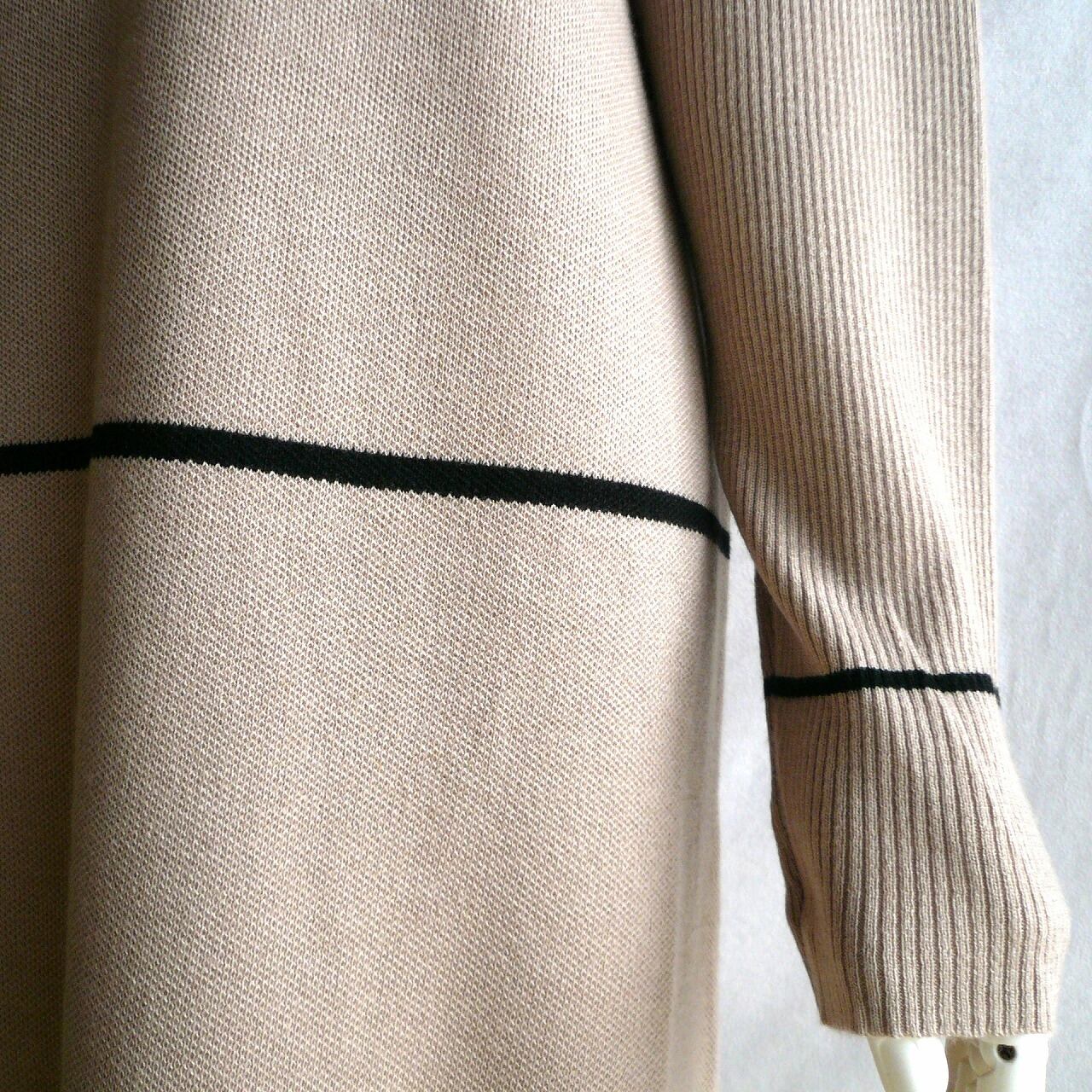 「リブ編み」と「かのこ編み」を組み合わせた編地切替で、横ラインがすっきりと洗練された印象に。
