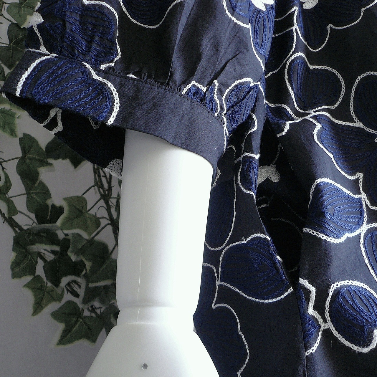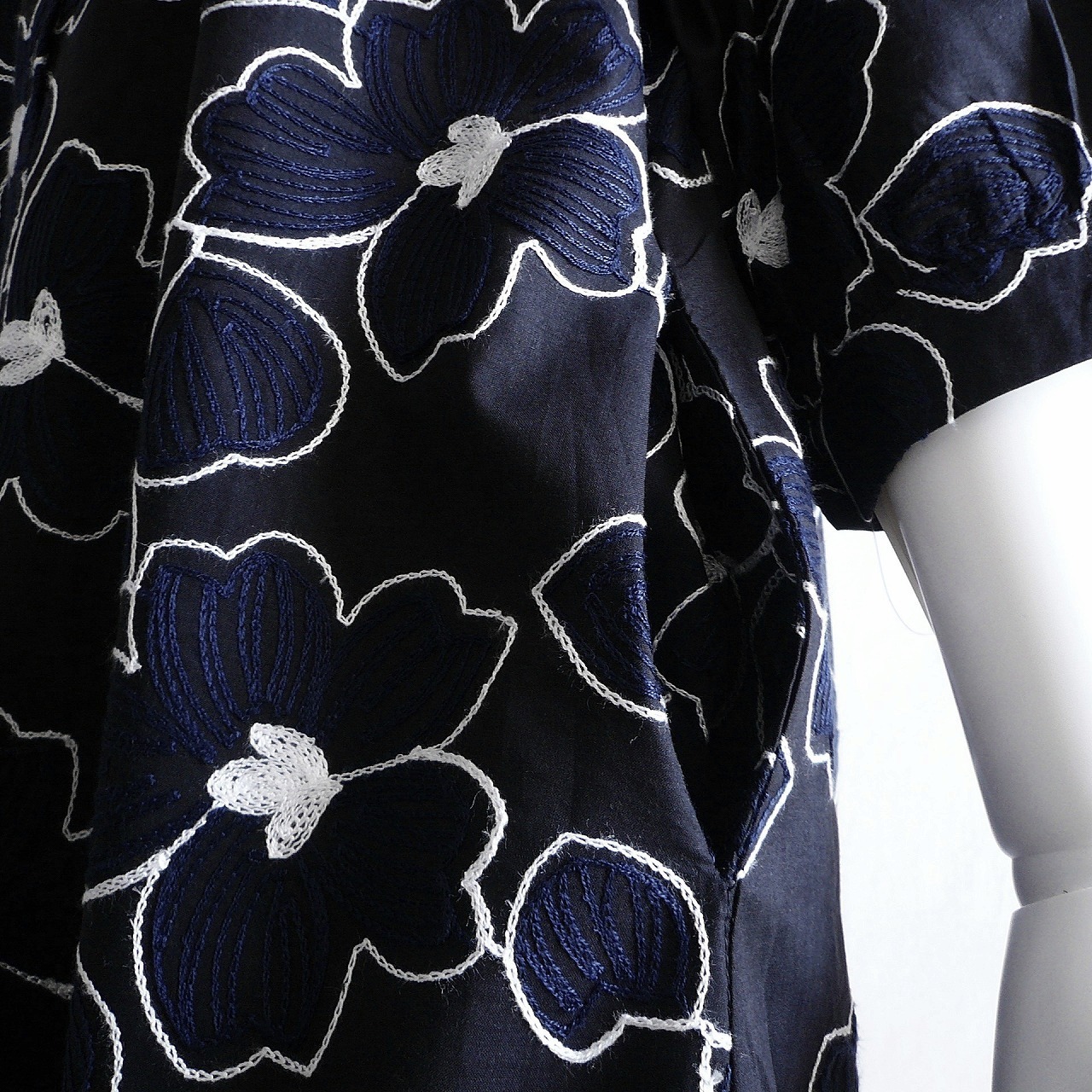 目を引く大きな花模様のステッチ刺繍が施された、上品なシャツチュニックです。