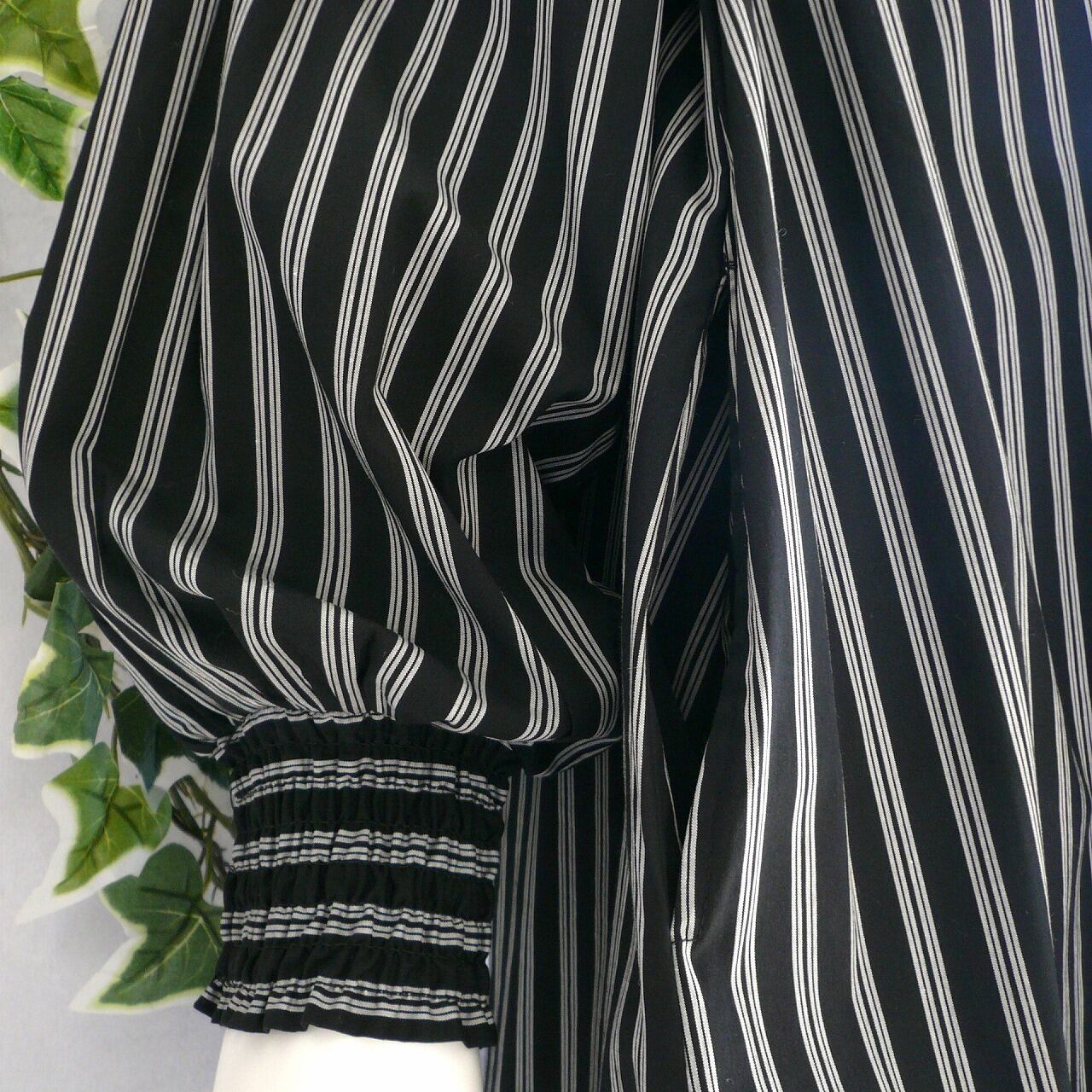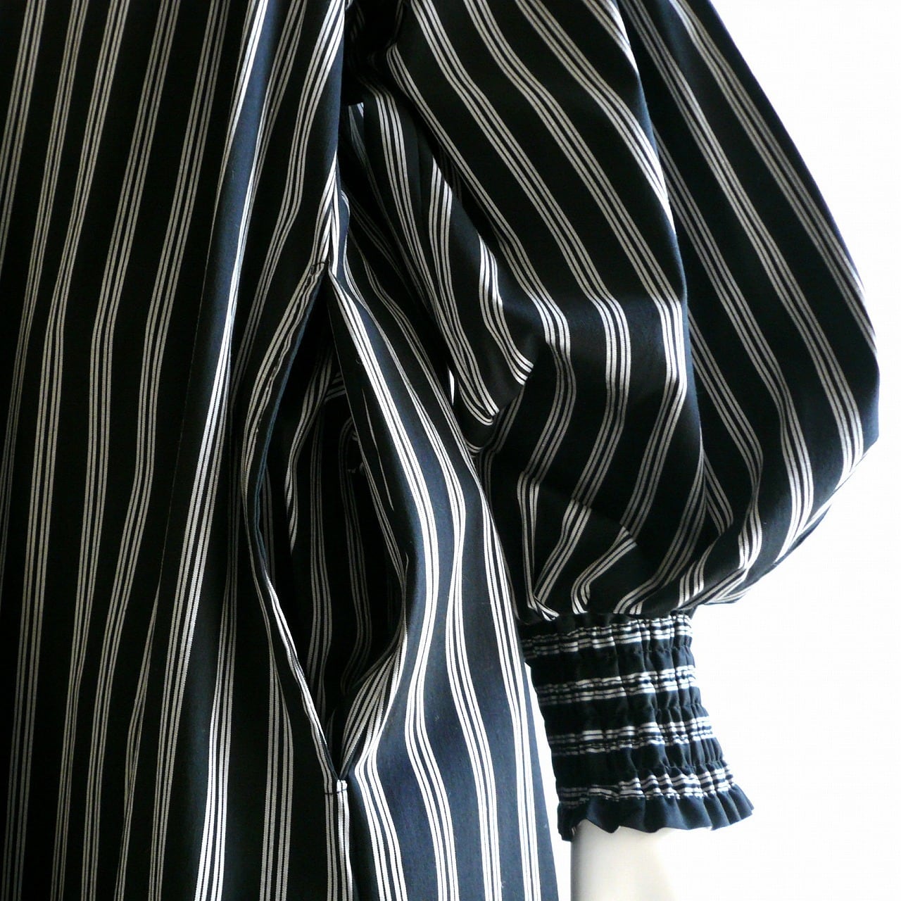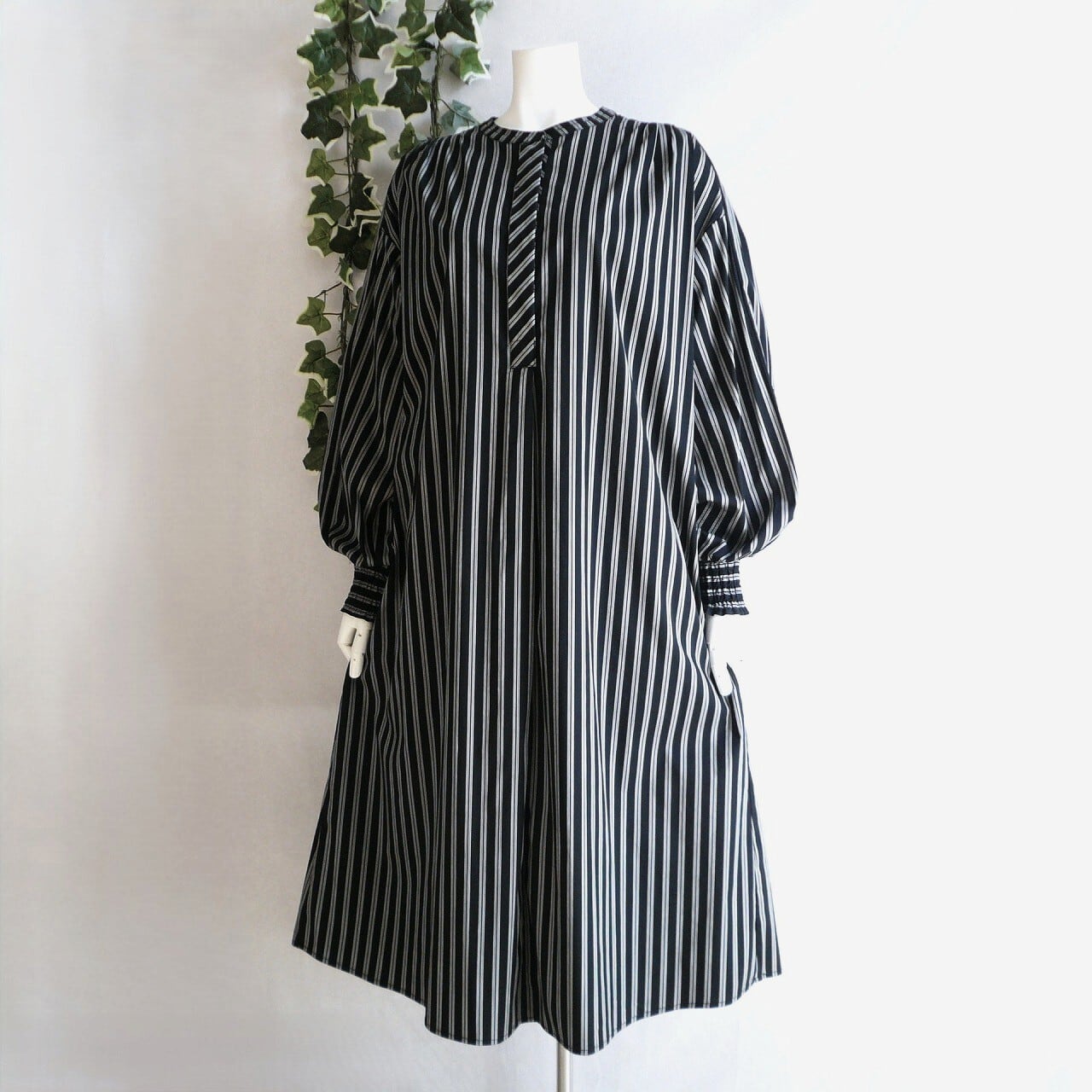 太い線と細い線が印象的なストライプ柄の高級シャツワンピースです。