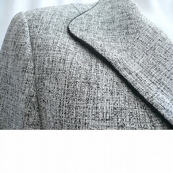 【ジャケット】上質のツイードジャケット。襟にパイピング。おしゃれなワンボタン。折り返し袖。肩パット入り(取り外し不可)。総裏地。