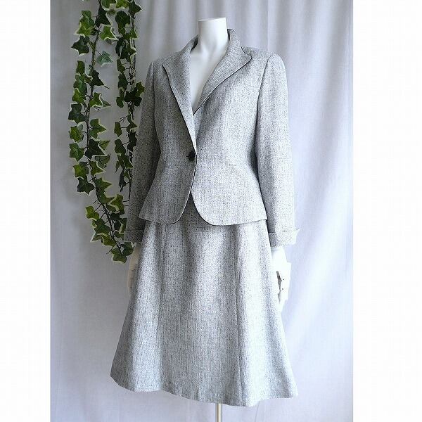 【ジャケット、スカート】表地:ポリエステル52%、レーヨン47%、ナイロン1%。裏地・ポリエステル100%。